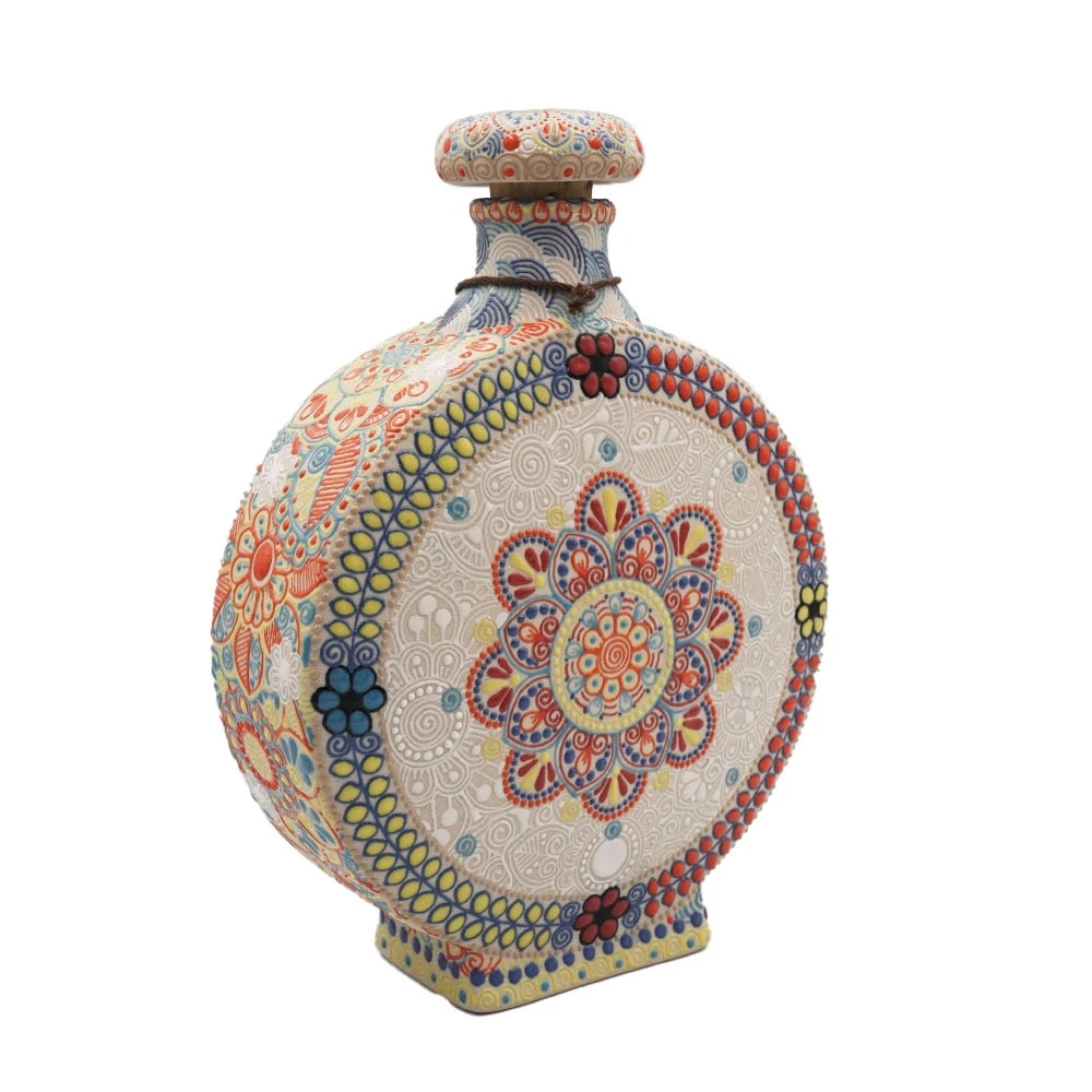 Cerámica de alta temperatura, hecha y decorada a mano.