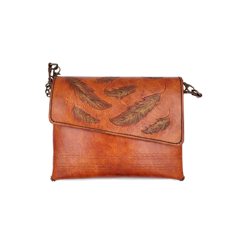 Bolsos artesanales de cuero cincelado para mujer. Bolsos y carteras de piel para mujer.