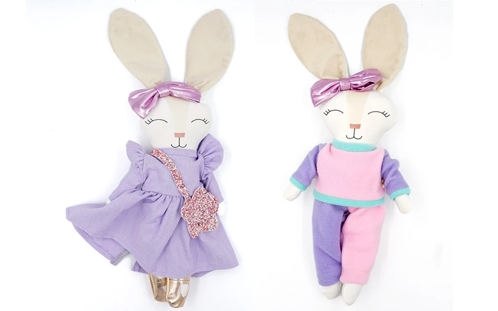 MUÑECO DE TELA EN FORMA DE CONEJITO QUE SE RELLENA Y SE VISTE CON ROPITA
