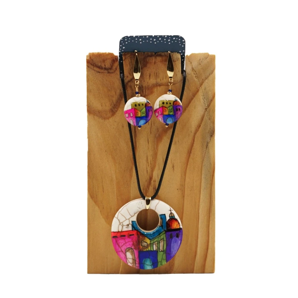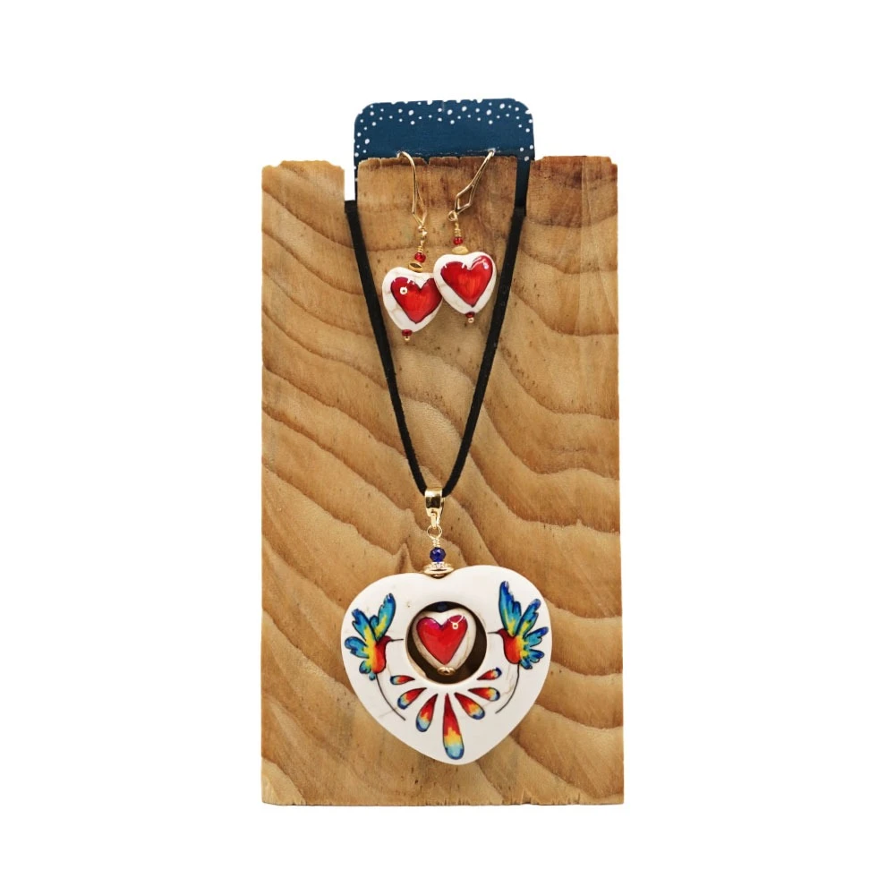 JOYERIA ARTESANAL EN PIEDRA TURQUESINA Y MADERA PINTADA A MANO