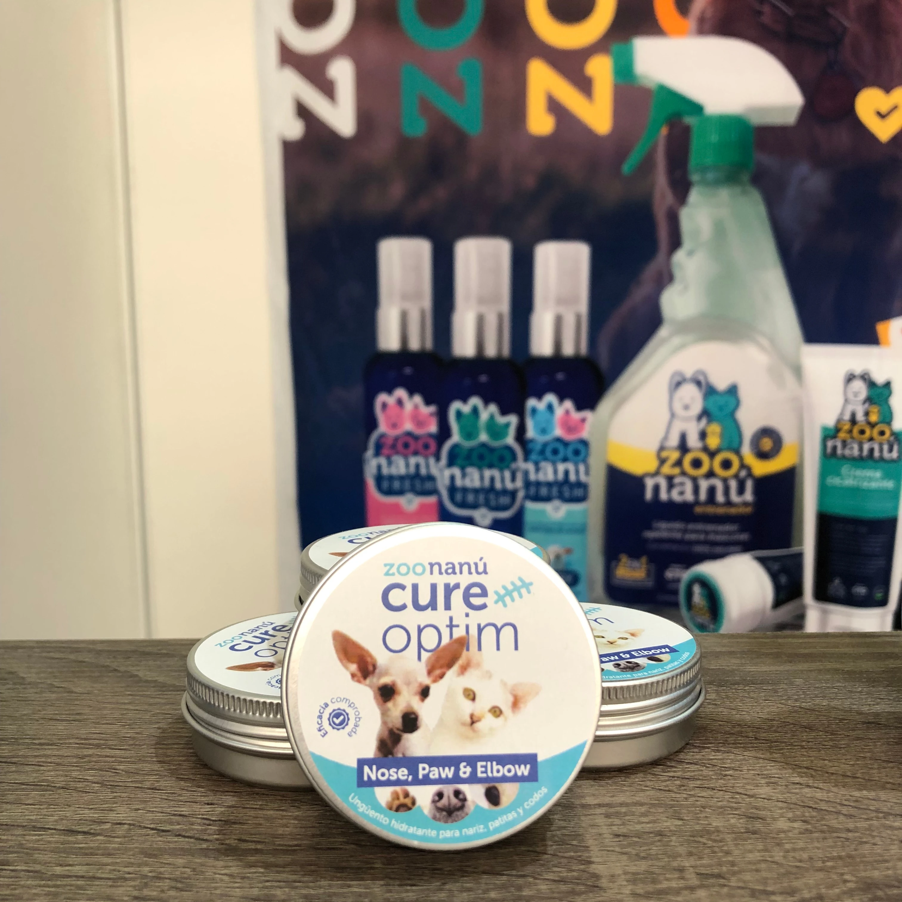 Tenemos una gama de productos clasificados como Zoonanú SPA (Jabones de avena, manzanilla y alquitrán; Shampoo para pulgas; Shampoo para el baño normal; perfumes con diferentes fragancias), MASTIK (Patitas de pollo deshidratadas; Tráquea de carnero deshidratada; Sazonadores de hígado de carnero y cerelaes; Mix Nanu SNAKS) y CURE Optim (Ungüento para la nariz, codos y almohadillas; Crema cicatrizante para el cuidado de su piel)